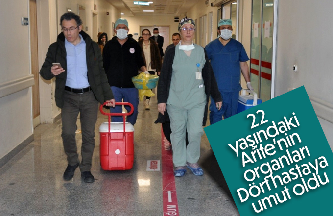 Karaman'da geçirdiği trafik kazası sonucu beyin ölümü gerçekleşen 22 yaşındaki Arife Korkmaz'ın organları 4 hastaya nakledilecek.