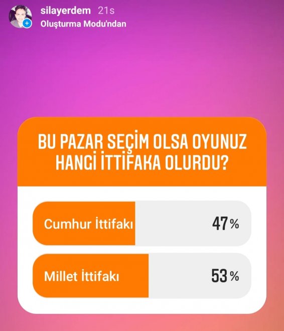 Facebook ve Instagram'da yapılan ankette mükerrer oy kullanma imkânı kesinlikle imkânsız ve kimin hangi ittifaka destek vereceği de görünüyor.