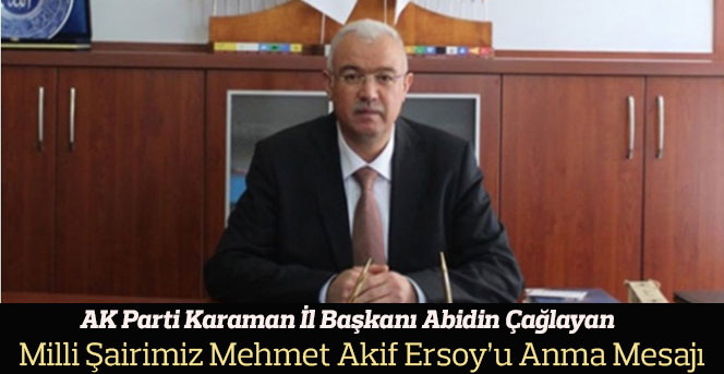 AK Parti Karaman İl Başkanı Abidin Çağlayan, 27 Aralık 1936 tarihinde hakkın rahmetine kavuşan Milli Şairimiz Mehmet Akif Ersoy’un ölüm yıl dönümü nedeni ile yayınladığı anma mesajında;