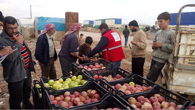 ‘Meslek Lisesi Öğrencileri Ailelerimizle Buluşuyor’ projesi kapsamında Akçaşehir Belediyesi ve halkının da desteğiyle toplanan bir tır dolusu elma iş adamlarının desteğiyle Afrin’deki güvenli bölgeye ulaştırılırdı.