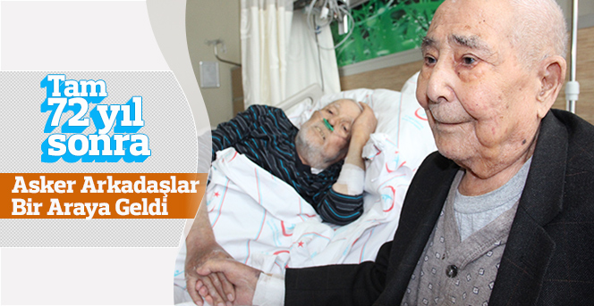 Karaman Devlet Hastanesi Palyatif Bakım Ünitesinde yaklaşık 1.5 yıldır tedavi görmekte olan 91 yaşındaki Ali Sert, 72 yıl önce birlikte askerlik yaptığı koğuş arkadaşı 91 yaşındaki Tahir Tanış’ın aynı odada tedavi olduğunu görünce hayli sevindi. Asker arkadaşıyla 72 yıl sonra tekrar buluşmanın mutluluğunu yaşadığını söyleyen Ali Sert, "Tahir Tanış ile askerliğimizi Çanakkale Gelibolu’da yaptık. Biz hiçbir zaman sevgimizi ve güleryüzümüzü birbirimizden eksik etmedik” dedi. Askerlik anılarını da anlatan Ali Sert, arkadaşıyla yıllar sonra buluşması nedeniyle torunlarının getirdiği pastadaki mumları üfleyerek söndürdü. Asker arkadaşlarının röportaj sırasında bile birbirlerinin elini bırakmaması ise dikkatlerden kaçmadı.