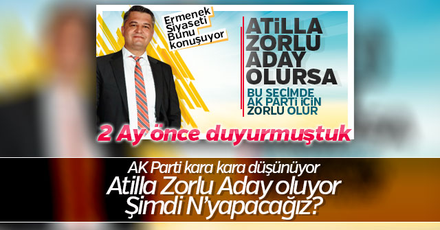 Adaylığı konusunda Facebook’tan bir açıklama yapan Atilla Zorlu şunları söyledi; “ Çok severek yaptığım, çok güzel insanlar tanımama sebeb olan mesleğinden bugün itibarıyla ayrıldım. Ermenek beledıye başkanlığına aday oldum. Hayırlısını dilereyek yola çıkıyoruz. Cenabı Allah memleketimize hizmet etme fırsatı verirse ne mutlu bize. SELAM VE DUA İLE..”
