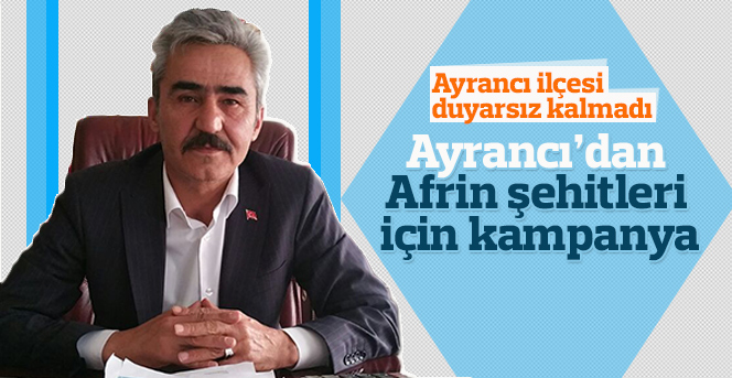 Operasyon kapsamında şehit düşen kahramanların aileleri için yurdun bazı bölgelerinde başlatılan yardım kampanyalarına Karaman’ın Ayrancı ilçesi duyarsız kalmadı. Ayrancı Kaymakamlığı ve Ayrancı Belediyesi’nin ortaklaşa başlattığı kampanya, operasyon kapsamında şehit olanların ailelerini kapsıyor. Konuyla ilgili Ayrancı ilçesinde yapılan toplantıya; Ayrancı Kaymakamı Mustafa Türkcan, belediye başkanı Yüksel Büyükkarcı, il genel meclis üyeleri, mahalle ve köy muhtarları, siyasi partilerin ilçe başkanları, daire müdürleri ve STK temsilcileri katıldı.