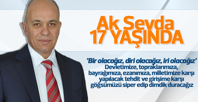Genel Başkanımız Cumhurbaşkanımız Recep Tayyip Erdoğan’ın her zaman önemle vurguladığı gibi ’Bir olacağız, diri olacağız, iri olacağız’ Bu inanç ve azimle ülkemizin 2023, 2053 ve 2071 hedeflerine ulaşabilmesi için bıkmadan yorulmadan çalışmaya ve hizmet üretmeye devam edeceğiz. Devletimize, topraklarımıza, bayrağımıza, ezanımıza, milletimize karşı yapılacak tehdit ve girişime karşı göğsümüzü siper edip dimdik duracağız. Bu duygu ve düşüncelerle milletin partisi olan AK Partimizin 17. kuruluş yıldönümünü en kalbi duygularımla kutluyorum.”