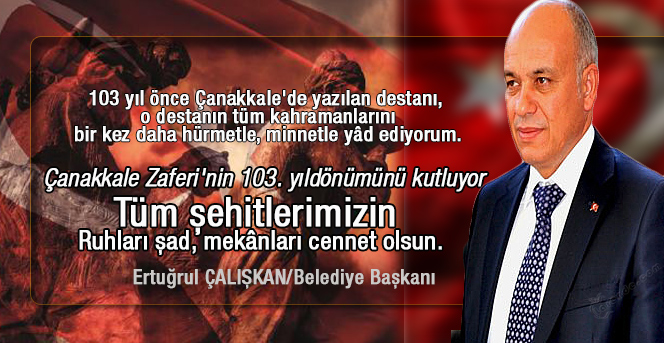 Belediye Başkanı Ertuğrul Çalışkan, mesajında; Çanakkale Zaferi'nin, vatan ve millet sevgisiyle yazılan bir kahramanlık destanı olduğunu belirterek, şehitlere şükran borcunu ödemenin yolunun vatana, bayrağa, birlik ve beraberliğe kararlı şekilde sahip çıkmaya devam etmekten geçtiğini bildirdi.