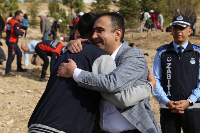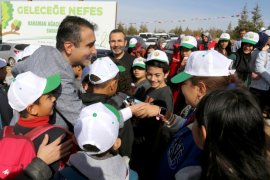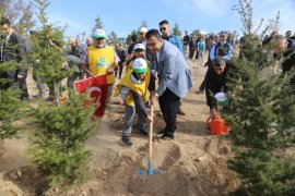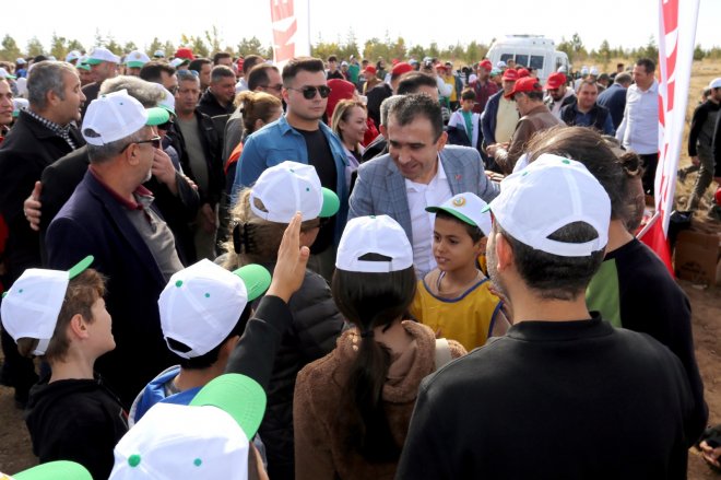 Vali Sarıibrahim ve Başkan Kalaycı saat 11.11'de öğrenciler ve vatandaşlarla birlikte fidan dikerek can sularını verdi. Kalaycı, ağaç dikme törenine katılan çocuklar ve aileleriyle tek tek selamlaşarak sohbet etti.