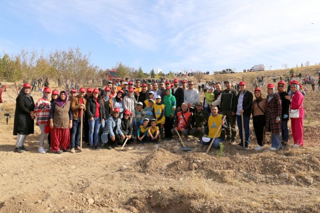 Hakkı Teke Ormanı Atış Poligonu Mevkii bölgesindeki ağaçlandırma sahasına çeşitli cinslerden oluşan toplam 2000 fidan ve tohum toprakla buluşturuldu.