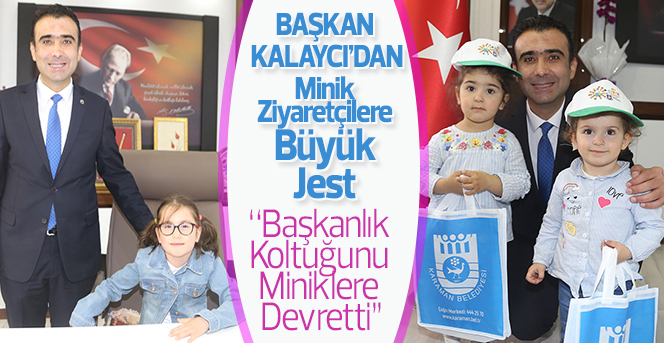 Belediye Başkanı Kalaycı 23 Nisan nedeniyle koltuğunu minik öğrencilere devretti. Mutlulukları ve heyecanları gözlerine yansıyan minikler ve aileleri Başkan Kalaycı’ya göstermiş olduğu bu nezaketten dolayı teşekkür ettiler.
