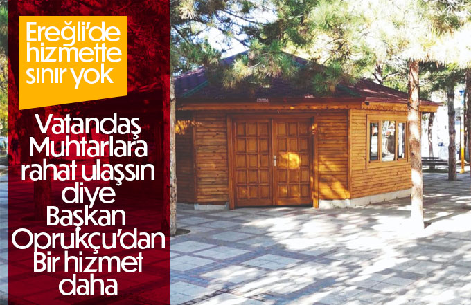 Ereğli Belediye Başkanı Hüseyin Oprukçu Ereğli’mizin merkezinde bulunan Fatih Parkı’nın içerisindeki binada yenileme çalışması kapsamında ay yıldız motifli bir bina yaptı. Bu binayı da çay içebilecekleri, mahalle sakinleriyle toplantı yapabilecekleri ve hatta işlerini yürütebilecekleri bir yer olarak muhtarların kullanımına sunacağını belirterek güzel bir jest yaptı.