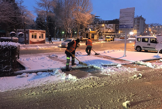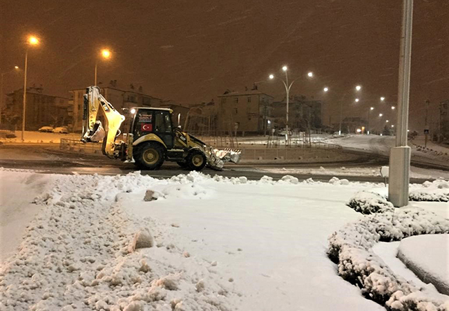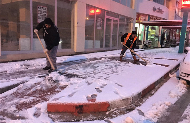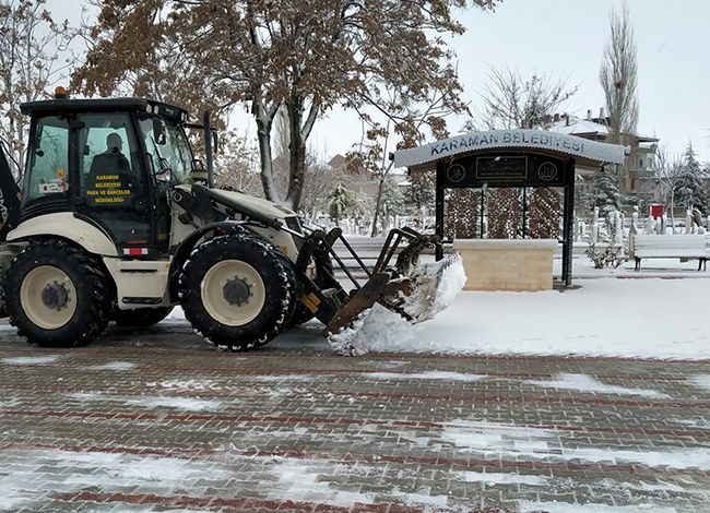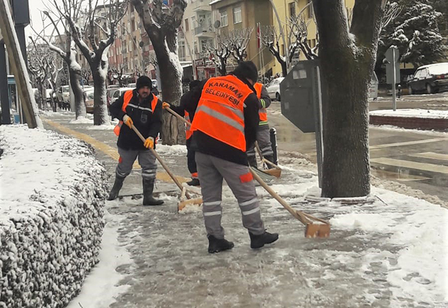 Karaman Belediyesi karla mücadele ekipleri, dün gece ilimizi etkisi altına alan kar yağışının başlaması ile birlikte sahada çalışmalarına başladı. İl merkezindeki cadde ve yollardan başlatılan kar temizleme çalışmaları ile birlikte araçların yoğun olarak kullandığı güzergâhlar açılırken yayalar için de kaldırımlar kardan temizlendi.