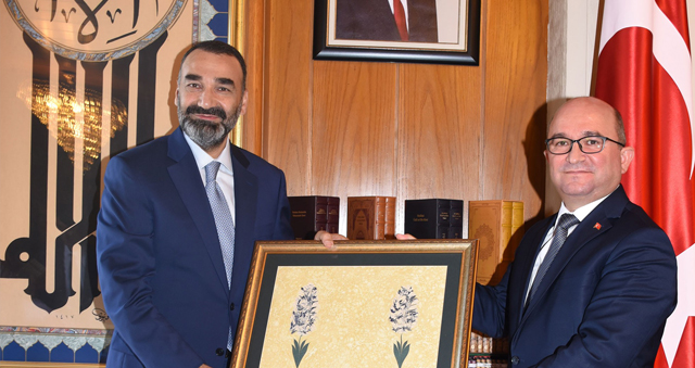 Ziyaretin sonunda Başkan Vekili Şahin, Vali Nur’a mesnevi ve ebru takdim ederken, Vali Nur da Şahin’e halı hediye etti.