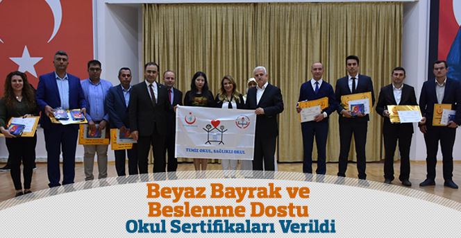 Milli Eğitim Bakanlığı ile Sağlık Bakanlığı arasında imzalanan Beslenme Dostu Okullar Programı ve Beyaz Bayrak İşbirliği Protokolü kapsamında Beyaz Bayrak ve Beslenme Dostu Okul sertifikalarını almaya hak kazanan okullara sertifikaları törenle verildi.