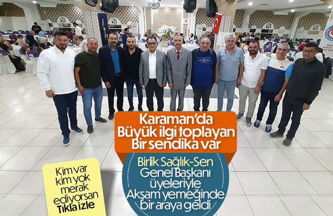 Yaklaşık 20 yıldır faaliyet gösteren ve geçtiğim aylarda Karaman'da aktif olarak çalışmaya başlayan Birlik Sağlık-Sen üyeleri akşam yemeğinde Karaman'a gelen Genel Başkanları Ahmet Doğruyol ile akşam yemeğinde buluşarak istişarelerde bulundular.