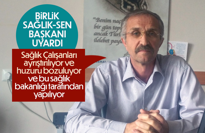 Birlik Sağlık Sen Karaman İl Başkanı Durmuş Ali Toptaş yaptığı basın açıklamasında; " Sağlık hizmetlerinde sağlık çalışanları her geçen gün birbirinden ayrıştırılmakta iş huzuru bozulmaktadır. Bu ayrıştırmanın Sağlık Bakanlığı eliyle yapılması ise kabul edilebilir bir durum değildir." dedi.