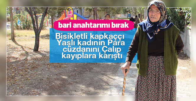 Olay, dün Ahmet Yesevi Mahallesi Şehit Ferhat Şarlak Caddesi üzerinde meydana geldi. Alınan bilgiye göre, evinin yakınındaki pazar yerinden alışveriş yaptıktan sonra yaya olarak evine dönüşe geçen 70 yaşındaki Fatma Yılmaz, bir süre dinlenmek için parktaki banka oturmak istediği sırada arkasında bisikletle gelen bir kişi elindeki cüzdanı alarak kaçtı. Neye uğradığı şaşıran yaşlı kadın, kapkaççının arkasından, "Evin anahtarlarını bırak para senin olsun" diye bağırdı. Bu sese kulak vermeyen bisikletli kapkaççı ise kayıplara karıştı. Yaşlı kadının yardımına koşan çevredeki vatandaşlar ise durumu hemen polise bildirdi. Olay yerine gelerek yaşlı kadınla görüşen ekipler, 15’li yaşlarda olduğunu tespit ettiği kapkaççıyı yakalayabilmek için geniş çaplı çalışma başlattı. Kapkaççıyı tespit edebilmek için çevredeki iş yerleri ve apartmanların güvenlik kameralarını incelemeye alan ekipler, buradan da bir sonuç alamadı. Olayın şaşkınlığını üzerinden atamayan Fatma Yılmaz, "Böyle bir olay ilk defa başıma geldi. Pazardan dönerken dinlenmek için parktaki banka oturmak istediğim sırada arkamdan gelen bisikletli bir kişi elimdeki yaklaşık 100 liraya yakın para ve evin anahtarların içinde bulunduğu cüzdanımı alıp kaçtı. Arkasından çocuğa, 'Evin anahtarlarını bırak para senin olsun' diye bağırdım ancak hiç durmadan kaçtı. Sonra bir genç yardımıma geldi ve polisi aradı" dedi.