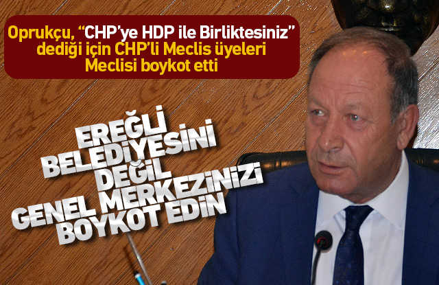 Ereğli Belediye Başkanı Hüseyin Oprukçu, CHP'nin HDP ve PKK ile beraber hareket ediyor şeklinde ki açıklamaları protesto etmek için dün Meclis toplantısını protesto ettiler.