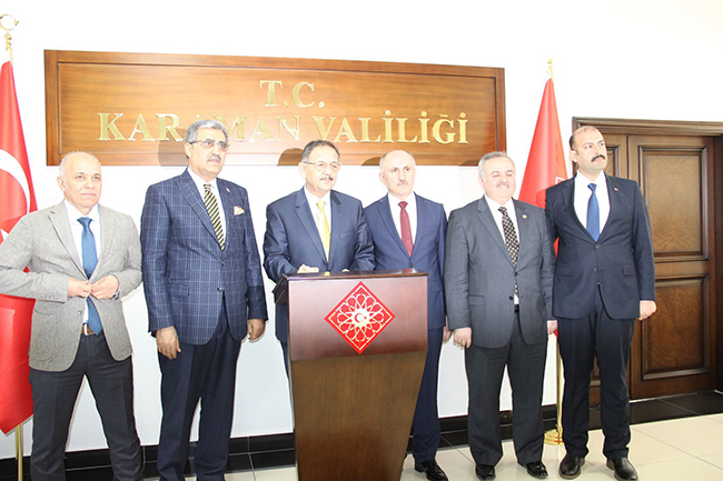 Helikopterle Karaman’a gelen Bakan Özhaseki, ilk olarak Karaman Valiliğini ziyaret etti. Burada şeref defterini imzalayan Özhaseki, daha sonra basın mensuplarına açıklamalarda bulundu. Bakan Özhaseki yaptığı açıklamada, "Bakanlık olarak Karaman milletvekillerimizle birlikte Karaman’a ne gerekiyorsa zaten yapıyoruz. Tabi ki yapılması gereken yatırımlar vardır. Bunlarda zamanı gelince yapılıyor. Şehrimize gelmişken, bir taraftan da kentsel dönüşümle ilgili yapabileceğimiz bir şey varsa onu da mutlaka inceliyoruz. Nihayetinde yıllarca belediye başkanlığı yapmış bir arkadaşınızım. Azda olsa bir tecrübe birikimim oluyor. Bakanlığımız tüm Türkiye'de kentsel dönüşümün merkezi, bu noktada da bir faydamız olursa Karamanımıza bundan büyük bir mutluluk duyarım" dedi.