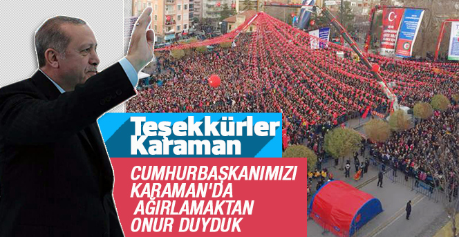 Belediye Başkanı Ertuğrul Çalışkan yaptığı açıklamada şu ifadelere yer verdi: “Dün Sayın Cumhurbaşkanımız AK Parti 6. Olağan İl Kongresi ve Toplu Açılış töreni için Karamanımızı şereflendirdi. Cumhurbaşkanımızın Karaman'a geleceği haberini ilk aldığımız andan itibaren, kendisini Karaman'a yakışır bir şekilde ağırlamak için; Valiliğimiz ve Emniyet Müdürlüğümüz başta olmak üzere diğer tüm kamu kurum ve kuruluşlarımızla sürekli koordinasyon halinde hazırlıklar gerçekleştirdik. Nitekim gerek Karamanoğlu Mehmet Bey Üniversitesi Spor Salonu'nda gerçekleştirilen AK Parti 6. Olağan İl Kongresi'nde, gerekse Ak Tekke 15 Temmuz Demokrasi Meydanı'nda düzenlenen toplu açılış töreninde Karamanlı hemşehrilerimiz Milletin Adamı Sayın Cumhurbaşkanımızı büyük bir coşkuyla, büyük bir heyecanla karşılayarak bağrına bastı.