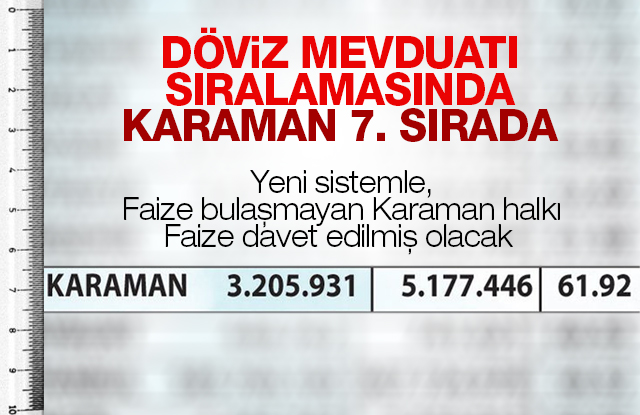 Faizi tercih etmeyerek Dövize yönelen şehirler arasında Karaman 7. sırada yer aldı.
