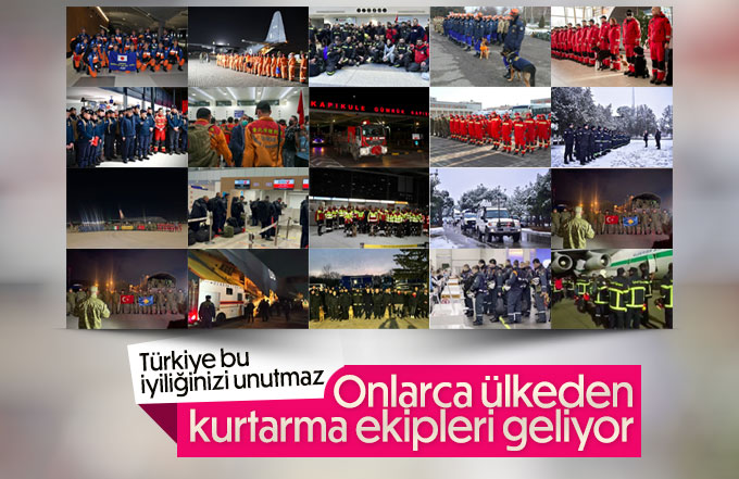 Türkiye'nin ulusal yardım talebinin ardından birçok ülke uzman arama kurtarma ekiplerini Türkiye'ye göndermeye başladı.