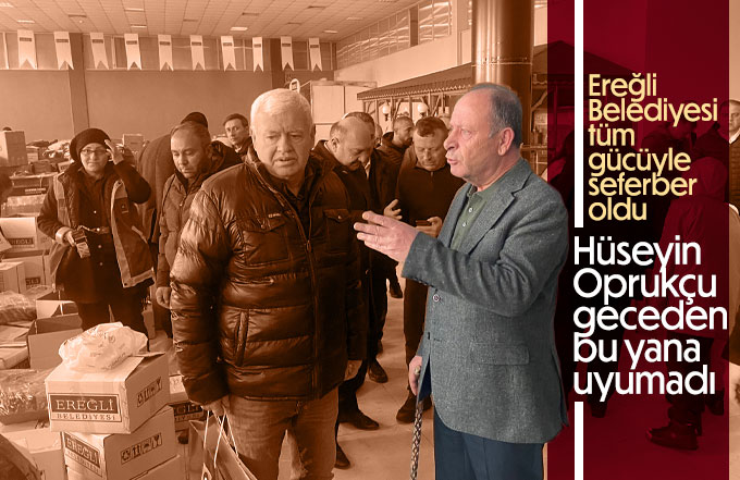 Yardım çalışmaları hakkında Kısa bir değerlendirme yapan Belediye Başkanı Hüseyin Oprukçu: “Maalesef Pazarcık ve Elbistan merkezli yaşadığımız ve 10 tane vilayetimizi etkileyen depremin üzüntüsü içerisindeyiz. Bu deprem vesilesiyle vefat eden vatandaşlarımıza Allah'tan rahmet, yaralılarımıza acil şifalar diliyoruz. Deprem haberini aldıktan sonra Kaymakamlığımızla birlikte organizeli olarak dün Ereğli Belediyesi’nden ihtiyaç malzemesiyle birlikte 5 tane iş makinemizi dün yönlendirdik, Hatay Bölgesi’nde AFAD koordinasyonu vesilesiyle Hatay’da görevlendirdik, çalışmalar devam ediyor. 55 tane arama kurtarma personelimizi, ülkü ocağından arkadaşlarımız da olmak üzere orada görevlendirdik, bugün de zannedersem gidecek arkadaşlarımız, gönüllü hemşerilerimiz var. Yine gönüllü hemşerilerimizden birkaç arabanın gittiğini biliyorum arama kurtarma faaliyetlerine katılmak üzere, inşallah bugün yine Zengen’imizden 3 tane iş makinesi yola çıktı, buradan Ereğlispor’umuzun Başkanı’nın organize ettiği 2 tane Vinç de yola çıktı. Bu arada iş adamlarımızdan özellikle hafriyatçılardan iş makineleri gönderenler var onlar da yolda, yine Ereğli Belediyesi olarak bir cenaze yıkama aracını yola çıkardık beraberinde jeneratör vs. ihtiyaçları olacak diye onu gönderdik. Yine bugün Belediyemizin ve Kaymakamlığımızın organizasyonunda toplanan gıdaları, battaniye ve giysileri Hatay’a ulaşmak üzere birazdan yükleyeceğiz. Günseven ve Torunoğlu firmalarımızın tahsis ettiği araçlarla, tırlarla inşallah malzemeler hedefine ulaşacak. Milletimizin acı gününde, milletimizle beraber olmanın onurunu yaşamak istiyoruz, onun gayreti içerisindeyiz, yaralar bir an evvel sarılsın istiyoruz. Ereğlili hemşerilerimizin de bu manada yardım kampanyasına gösterdikleri desteklerden dolayı hepsine ayrı ayrı teşekkür ediyorum, Allah onlardan razı olsun. Rabbim milletimizi beterinden korusun” ifadelerini kullandı.