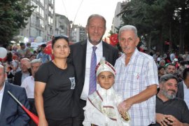 Belediye önünde kısaca duygularını ifade eden Belediye Başkanı Hüseyin Oprukçu: “Zaferler ayı Ağustos’ta Anadolu’dan düşmanın kovulmasını, denize dökülmesini temin ettiğimiz Büyük Taarruz’un 100. Yıldönümü hepimize kutlu olsun. Toplu sünnet organizasyonumuz kapsamında 600 talepten şu ana kadar 350’ye yakın çocuğumuz sünnet oldu, Allah’ın izniyle müracaat eden her ailemizin çocuklarının sünnetini yaptırmanın da şerefini yaşayacağız. Bu kutlu günde onlarla bir arada olmanın mutluluğunu yaşadık. Çocuklarımızın sünnetleri şimdiden hayırlı olsun. Onlar bizim geleceğimiz. Geleceğimizin teminatı çocuklarımız milletimizin, devletimizin bekası noktasında yeni zaferlere imza atmaya bugünden hazırlanacaklar inşallah” şeklinde konuştu.