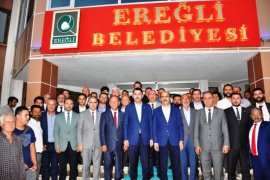 AK Parti İlçe Başkanlığı ziyaretinin ardından esnaflar ve vatandaşlarla da selamlaşarak ilerleyen Bakan Kurum Ereğli Belediyesi'ne ziyaret gerçekleştirdi. Ziyaretinde Ereğli'de yapılması planlanan proje ve hizmetlerle ilgili Belediye Başkanı Hüseyin Oprukçu ile istişarelerde bulundu.