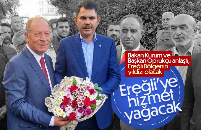 Ziyaretten duyduğu memnuniyeti dile getiren Başkan Oprukçu: "Çevre Şehircilik ve İklim Değişikliği Bakanı Sayın Murat Kurum’u Ereğli’mizde ağırlamanın, esnaflarımızla ve hemşerilerimizle bir araya gelmenin mutluluğunu yaşadık. Varlığıyla iftihar ettiğimiz kıymetli hemşerimiz, Çevre Şehircilik ve İklim Değişikliği Bakanımız Sayın Murat Kurum’a Belediyemizi ziyaretiyle onurlandırmasından dolayı teşekkür ederim. Sayın Bakanımızla Ereğli’mizde yapılmasını planladığımız projelerimiz hakkında da istişarelerde bulunma fırsatı bulduk, projelerimize ve hizmetlerimize gösterdiği ilgi, olumlu yaklaşımı ve desteklerinden dolayı bilhassa teşekkür ediyor, gerçekleştirdikleri üstün hizmetleri noktasında başarılarının devamını diliyorum" ifadelerini kullandı.