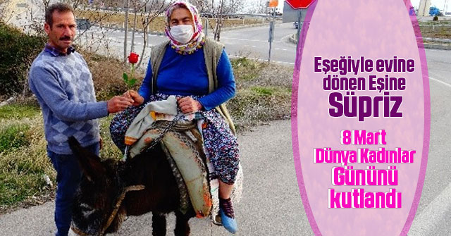 Eşek sırtındaki eşine kadınlar günü sürprizi