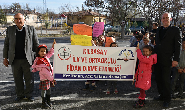 Etkinlik öncesi Kılbasan İlkokulu ve Ortaokulu idareci ve öğretmenleriyle bir araya gelen İl Milli Eğitim Müdürü Mevlüt Kuntoğlu, ağaçlandırma konusunda önemli projelere imza atıldığını ifade ederek ağaç dikiminde Türkiye’nin iyi bir noktada olduğunu dile getirdi. Kuntoğlu, “Türkiye olarak fidan dikimi konusunda 7’den 70’e herkes seferber olmuş durumdayız. Bilinç oluşturma aşamasında öğretmenlerimize önemli görevler düşüyor. Çocuklarımızın ve bizlerin daha kaliteli bir hayat sürmesi için daha fazla ağacın olması gerekiyor. Bugün fidanlarımızı toprakla buluşturacağız. 2023 Eğitim Vizyonu’nda belirtildiği gibi vicdani değerlerle yaşadığı çevreye duyarlı nesiller için yeşili seven ve koruyan öğrenciler yetiştirmek boynumuzun borcudur. Bu etkinlikle dikilen fidanlar 15 Temmuz gecesi gerçekleştirilen hain saldırıda şehit olan vatan evlatlarının anısına, şehitlerimizin isimleri ile yaşayacak. Bu etkinlik için Bifa Vakfından 715 ağaç aldık ve okullarımıza dağıttık. Katkılarından dolayı Bifa Vakfına ve Bifa Eğitim Kurumlarına teşekkür ederim” dedi.