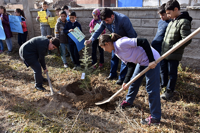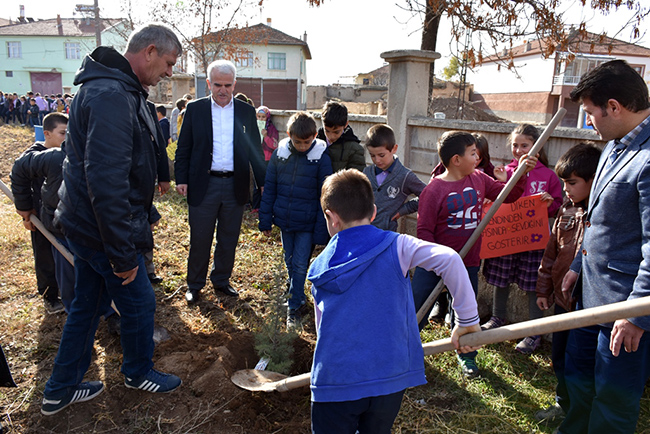 İl Milli Eğitim Müdürü Mevlüt Kuntoğlu’nun konuşmasının ardından ağaç dikim programına geçildi. İl Milli Eğitim Müdürü Mevlüt Kuntoğlu öğrencilerle birlikte fidanları dikerek onlarla bir süre sohbet etti.