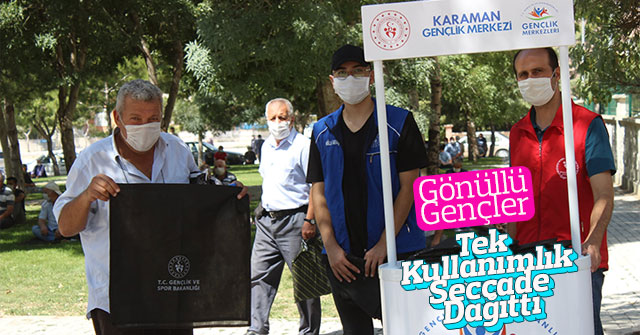 Karaman Gençlik Merkezi bünyesinde birçok alanda faaliyet yürüten gençlik liderleri ve gönüllü gençler, yeni tip koronavirüs (Kovid-19) tedbirlerine yönelik çalışmalarını sürdürüyor. Daha önceki aylarda koronavirüs salgınına karşı mücadele eden sağlık çalışanları için siperlik maske üreten gençlik liderleri ve gönüllü gençler bu kez de cuma namazına gelen vatandaşlar için tek kullanımlık seccade dağıttı.
