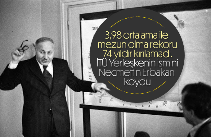 İTÜ Makine Mühendisliği Bölümünden 3,98 ortalama ile mezun olan ve ortalama not rekorunu halen elinde bulunduran Erbakan Hoca’mızın ismi, İTÜ’nün Gümüşsuyu Yerleşkesi’ne verildi.