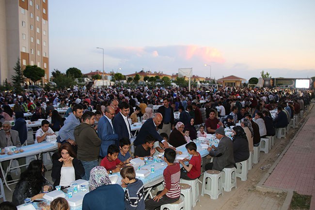Karaman Belediyesi’nin haftanın dört günü farklı mahallelerde düzenlediği iftar sofrası, Başakşehir Mahallesi’ndeki TOKİ konutlarında düzenlendi.
