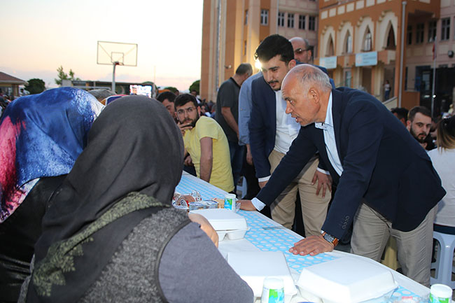 İftar saati öncesinde masaları tek tek dolaşan Başkan Çalışkan, vatandaşlara hayırlı iftarlar diledi.