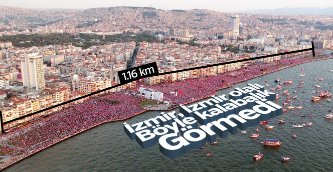 24 Haziran’a sayılı günler kala CHP’nin Cumhurbaşkanı adayı Muharrem İnce İzmir’de düzenlenen mitingde yaklaşık 2 buçuk milyon kişiyle bir araya geldi. Muhteşem kalabalık karşısında İnce, “Sahnenin önünde 1 milyon insan varsa 1 milyon kişi de sahnenin arkasında duruyor. Bu 49. günde 105. mitingimiz. Günlerdir konuşuyorum ama medya vermemekte ısrarlı. Hele bir TRT var, parayı bizden alıyor Erdoğan’ın borazanlığını yapıyor. Sizden ricam, hepiniz telefonlarınızdan canlı yayın yapın. Bir yanda Erdoğan’ın medyası, bir yanda milletin medyası” dedi.