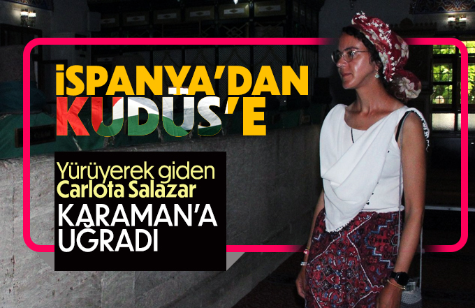 İspanya'da yaşayan Carlota Salazar, Filistin'in Kudüs şehrine gitmek için yaya olarak çıktığı yolculukta 6 bin kilometre yürüyerek Karaman'a ulaştı.