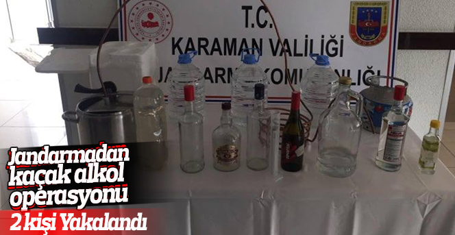 Karaman’da evlerinde kaçak alkol üretimi yaptıkları ileri sürülen 2 kişi jandarma tarafından gözaltına alındı.
