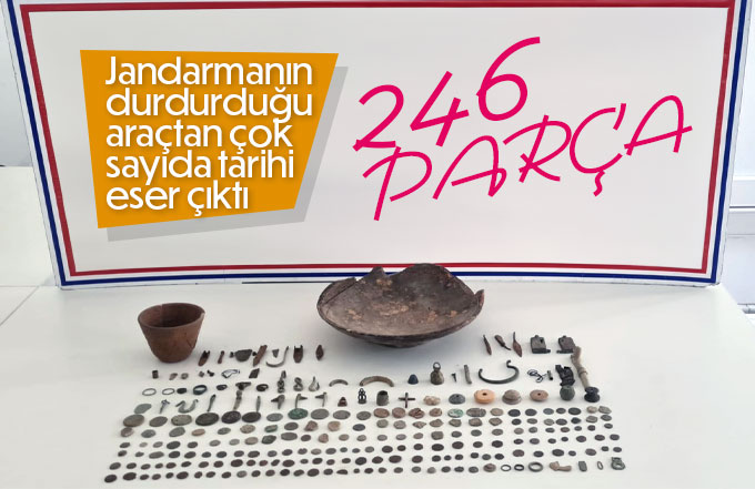 Jandarmanın durdurduğu araçtan çok sayıda tarihi eser çıktı