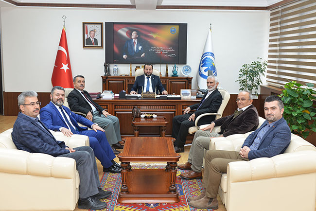 Panel öncesi davetli konuşmacılar Necmettin Erbakan Üniversitesi Öğretim Üyeleri Prof. Dr. Nuri Köstüklü ile Prof. Dr. Caner Arabacı ve Selçuk Üniversitesi Dr. Öğr. Üyesi Mustafa Arıkan KMÜ Rektörü Prof. Dr. Mehmet Akgül’ü makamında ziyaret etti.