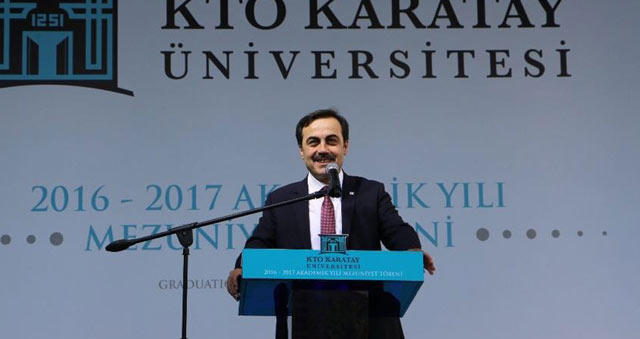 Anadolu’nun Türk toprakları olarak tescillenmesinden 180 yıl sonra yani 1251 yılında, alpliğin yanına erenliği de koyan Karatay Medresesinin günümüzdeki temsilcisi olan Konya Ticaret Odası (KTO) Karatay Üniversitesinde mezuniyet töreni gerçekleştirildi. 2016-2017 akademik yılında 750 öğrencisini mezun etmenin coşkusunu yaşayan üniversitede bu yıl, Güzel Sanatlar ve Tasarım Fakültesi, Hukuk Fakültesi, İşletme ve Yönetim Bilimleri Fakültesi, Mühendislik Fakültesi, Sosyal ve Beşeri Bilimler Fakültesi ve Adalet Meslek Yüksekokulu mezunlarını verdi. Kur’an-ı Kerim tilaveti ve İstiklal Marşı’nın okunmasıyla başlayan törende açılış konuşmasını KTO Karatay Üniversitesi Rektörü Prof. Dr. Bayram Sade yaptı. KTO Karatay Üniversitesinin Karatay Medresesinden aldığı ilhamla medeniyeti inşa edecek insan kaynağını yetiştirme idealinde olduğunu bildiren Prof. Dr. Sade, “Diplomalarınızı aldınız, bunun meslek hayatınızda birçok kapıyı açacak bir altın anahtar olduğunu unutmayınız. Bilgiye ulaşmayı, derlemeyi, analiz etmeyi öğrendiniz. Bunu sektörel hizmete ve toplumsal faydaya dönüştürecek iradeyi de ortaya koymalısınız. Okulumuzun geçmişten geleceğe idealine uygun olarak milletin değerleri ve kökleri ile bağlarınız, milletimizin geleceğine dair idealleriniz, bir medeniyet inşası ülkünüz olsun” ifadelerini kullandı.