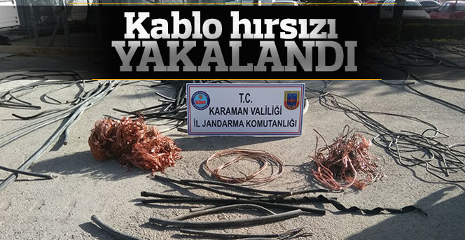 Edinilen bilgiye göre İl Jandarma Komutanlığı sorumluluk bölgesinde meydana gelen 4 bağ,bahçe ve tarladan kablo hırsızlığı olayı ile ilgili yapılan istihbari çalışma sonucu; 20 Mart 2018 tarihinde şehir merkezinde kabloların bulunduğu bir depo tespit edilmiştir.İiki çuval içerisinde 30 kg. bakır madeni ile 680 metre bakır kablo ele geçirilmiştir. şüpheli Z.E (1980 doğumlu) yakalanmıştır. Soruşturmanın derinleştirilmesi ve kabloların hırsızlık mağdurlarına teşhis ettirilmesi neticesinde, 15 ayrı hırsızlık suçununda aydınlatılması sağlanmıştır.