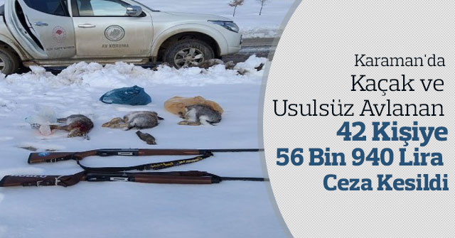 Karaman Doğa Koruma ve Milli Parklar Şube Müdürlüğü tarafından kaçak ve usulsüz avlanma yaparken yakalanan 42 kişiye 56 bin 940 lira para cezası kesildi.