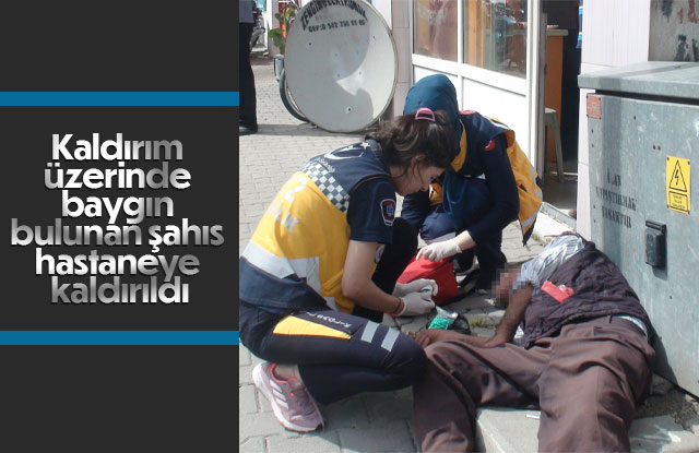 Kaldırım üzerinde baygın bulunan şahıs hastaneye kaldırıldı