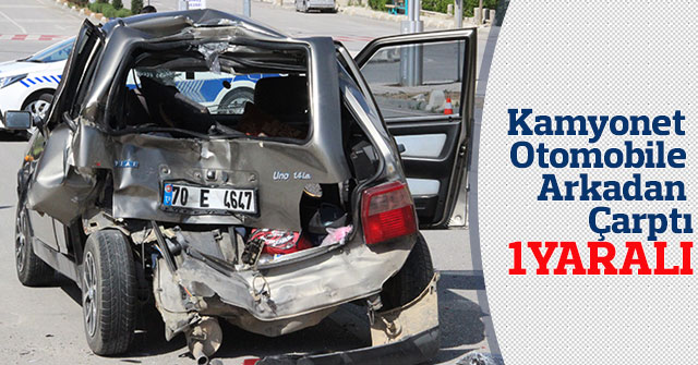 Karaman'da kamyonetin aynı istikamette seyreden otomobile arkadan çarpması sonucu 1 kişi yaralandı.