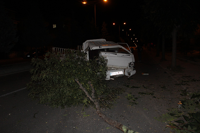 Kamyonetin çarptığı ağaç devrildi serçe telef oldu