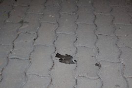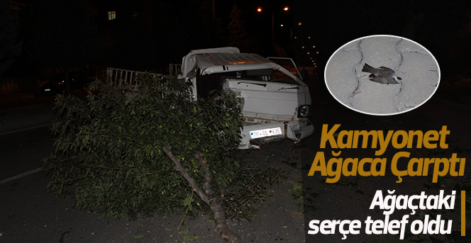 Karaman’da kontrolden çıkan kamyonetin çarpması sonucu devrilen ağaç, geceyi ağaçta geçiren serçenin telef olmasına neden oldu.