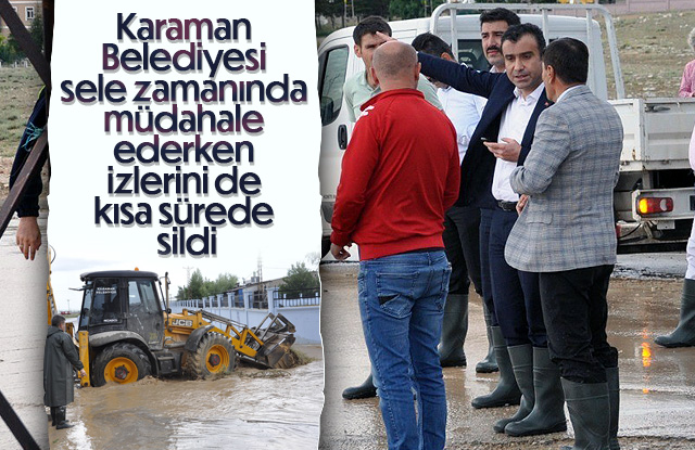 Karaman Belediyesi dün Urgan Mahallesinde yaşanan sele zamanında müdahale ederek su taşkınlarını önlerken, selin izlerini de kısa sürede sildi.