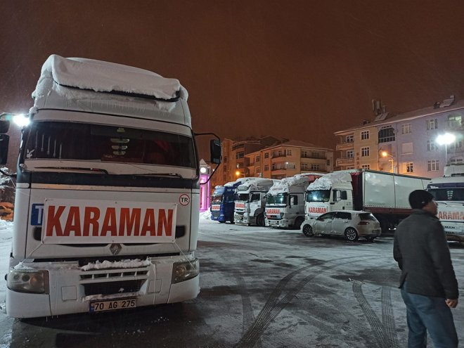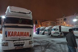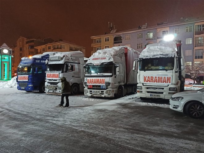 Karaman Belediyesinin yardım Tırı vatandaşları bekliyor.