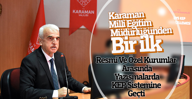Karaman İl Milli Eğitim Müdürlüğü, tüm okul ve eğitim kurumlarıyla yazışmaların elektronik ortamda gerçekleşmesini sağlayan Doküman Yönetim Sistemi’ne (DYS) bir yenilik getirilerek sisteme entegre edilen eklenti ile eğitim kurumları dışındaki resmi ve özel kurumlarla elektronik ortamda yazışmayı mümkün kılacak Kayıtlı Elektronik Posta (KEP) sistemine geçiş yaptı.